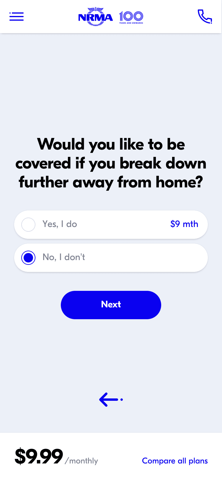 The NRMA Blue brand identity, developed by Houston Group, provided a strong foundation that aligned closely with the experience we were designing. This allowed us to focus on clarity, usability, and value rather than reinventing visual language.